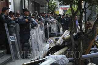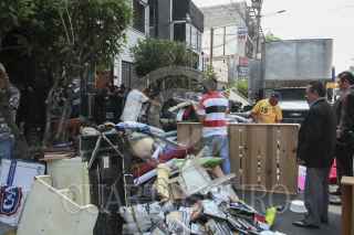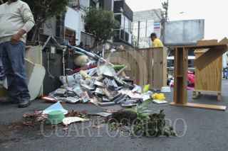 MÉXICO, D.F., 15ABRIL2015.- Desalojo del edificio numero 400 en la calle Monterrey casi esquina con Viaducto. Doce familias fueron desalojas sin previo aviso, por una orden del Juzgado civil numero 23. El ahora dueño Miguel Loizaga, señaló que el juicio fue por un adeudo de Banca Serfin hace más de 30 años, que supuestamente se les informó a cada uno de los vecinos, sin embargo la moyaria de los vecinos afirman lo contrario, que en ningún momento fueron notificados. Miguel Loizaga acompañado por su equipo de abogados, y más de 100 elementos de la Secretaria de Seguridad Publica, privo de su hogar a más de 50 personas. FOTO: ISABEL MATEOS /CUARTOSCURO.COM
