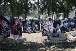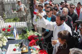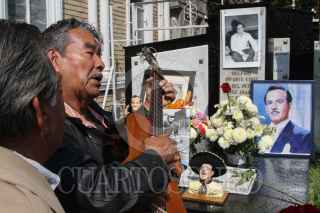 MÉXICO, D.F., 15ABRIL2015.- Amigos, familiares y fans de Pedro Infante asistieron a la misa en honor de su 58 aniversario de su muerte del cantante, algunos seguidores cantaron en la tumba donde yace los restos del actor y cantante ubicado en el panteón Jardín. FOTO: SAÚL LÓPEZ /CUARTOSCURO.COM
