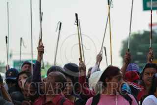 MÉXICO, D.F., 16ABRIL2015.- Integrantes de la Asociación Mexicana por el Trato Humano, Social, Material y Cultural de los Invidentes y Débiles Visuales realizaron una marcha en protesta por el cierre de locales que tenían en la estación del Metro Hidalgo. Aproximadamente 300 invidentes se movilizaron desde la Avenida Hidalgo hasta la plancha del Zócalo capitalino. Exigen al jefe de Gobierno Miguel Ángel Mancera la reubicación de sus locales ya que esa era su única fuente de ingresos. FOTO: ISABEL MATEOS /CUARTOSCURO.COM