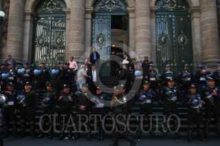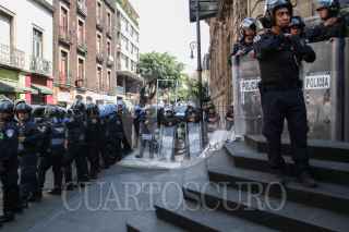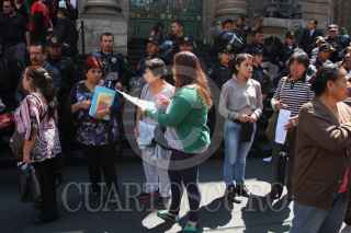 MÉXICO, D.F., 16ABRIL2015.- Integrantes de la Asamblea de Barrios bloqueo la Asamblea Legislativa del Distrito Federal e impidieron la entrada y salida de cualquier persona. Con mantas y banderas, hombres y mujeres de la Asamblea de Barrios gritaban y amenazaban "Si no hay solución nos quedamos en plantón". Despues de unos minutos alrededor de 100 granaderos retiraron a los manifestantes y custodiaron el edificio. FOTO: ISABEL MATEOS /CUARTOSCURO.COM