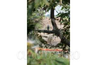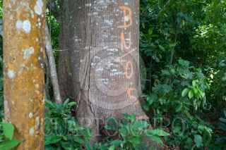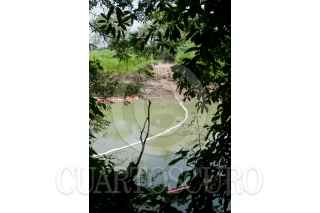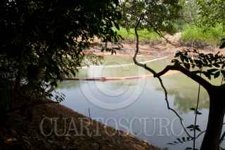 JALAPA, TABASCO, 17ABRIL2015.- Dentro de la propiedad de la paraestatal petrolera donde se encuentran instrumentos y tuberías del Campo Agave, Activo de Producción fue localizada una marca con letras y signos que presuntamente fue dejada por el crimen organizado. En el mencionado lugar, pero sobre las rivera del rio Teapa se puede observar a personal de PEMEX que aún no han podido controlar en su totalidad la contaminación provocada por el aceite crudo. FOTO: MARCO POLO GUZMÁN HERNÁNDEZ /CUARTOSCURO.COM