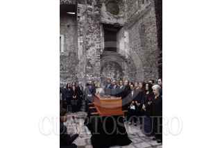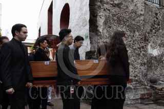 MÉXICO, D.F, 17ABRIL2015.- Los restos atribuidos de Sor Juana Inés de la Cruz fueron trasladados durante un cortejo funebre y posteriormente depositados detrás de una vitrina dentro de la Universidad del Claustro de Sor Juana por la conmemoración de los 320 años de su muerte. FOTO: RODOLFO ANGULO /CUARTOSCURO.COM