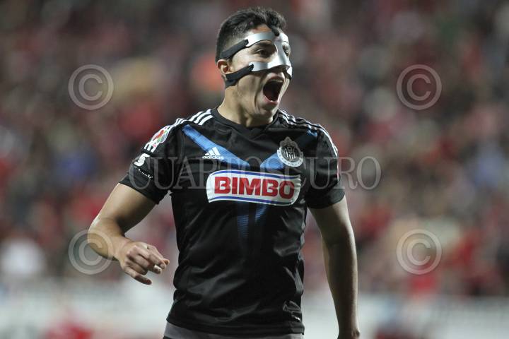 TIJUANA, BAJA CALIFORNIA, 18ABRIL2015.- Ayer, las Chivas de Guadalajara empataron a uno con los Xolos del Tijuana en el Estadio Caliente. Los goles fueron de Miguel Ponce por los locales, mientras que el gol del rebaño lo hizo Omar Bravo. En la imagen Carlos Salcedo de Chivas. FOTO: CHRISTIAM SERNA /CUARTOSCURO.COM