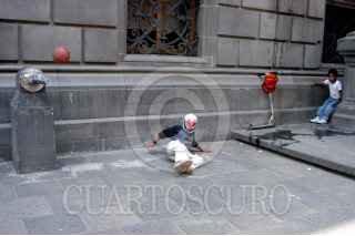 MÉXICO D.F. 19 ABRIL 2006.- Para los niños del D.F. apovechan sus ultimos dias de vacaciones, para jugar una cascarita, en el patio del Senado de la República. FOTO: Guillermo Perea/ CUARTOSCURO.COM