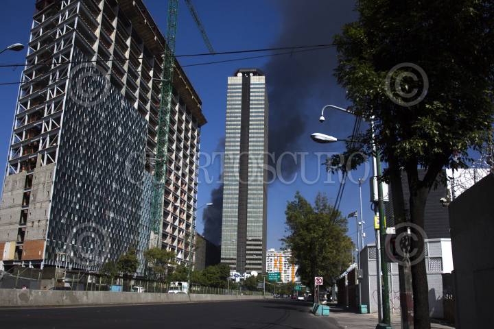 MÉXICO, D.F., 19ABRIL2015.- Elementos de protección civil, Bomberos y Policías capitalinos a la fabrica de la Cervecera de grupo Modelo donde se registro un incendio que dejo una columna de humo por varios kilómetros. FOTO: ENRIQUE ORDÓÑEZ /CUARTOSCURO.COM