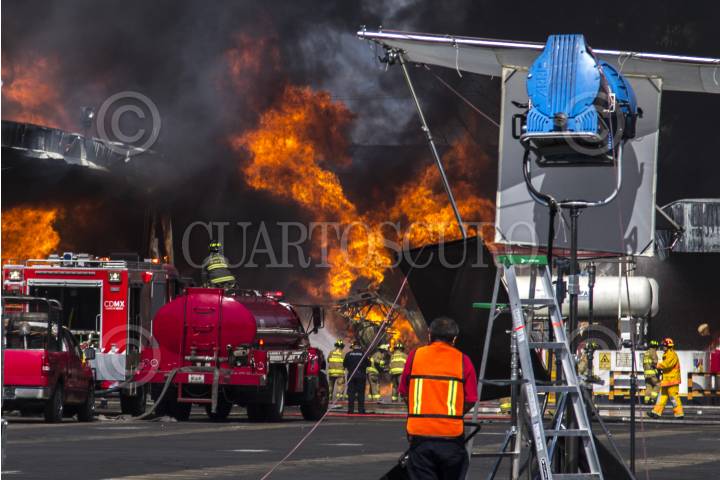 MÉXICO, D.F., 19ABRIL2015.- Elementos de protección civil, Bomberos y Policías capitalinos a la fabrica de la Cervecera de grupo Modelo donde se registro un incendio que dejo una columna de humo por varios kilómetros. FOTO: ENRIQUE ORDÓÑEZ /CUARTOSCURO.COM