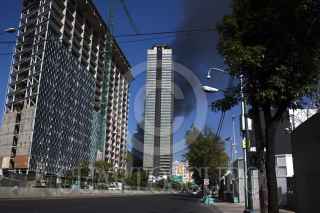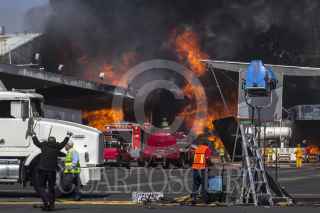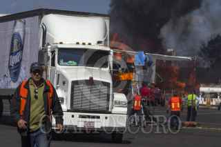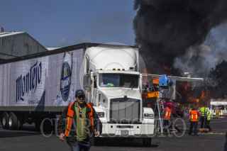 MÉXICO, D.F., 19ABRIL2015.- Elementos de protección civil, Bomberos y Policías capitalinos a la fabrica de la Cervecera de grupo Modelo donde se registro un incendio que dejo una columna de humo por varios kilómetros. FOTO: ENRIQUE ORDÓÑEZ /CUARTOSCURO.COM
