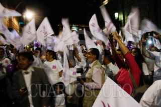 MÉXICO, D.F., 20ABRIL2015.- El Partido Humanista realizó un acto de inicio de campaña para sus candidatos a puestos de elección popular frente a la antigua sede del Senado de la República ubicado en Xicoténcatl esquina con Donceles en la colonia centro. FOTO: IVÁN STEPHENS /CUARTOSCURO.COM