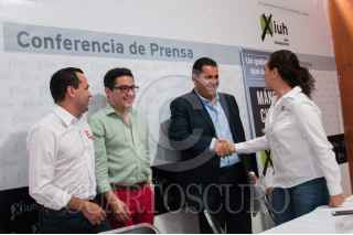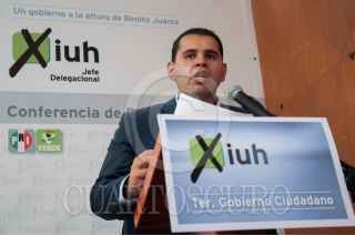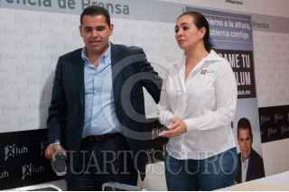 MÉXICO, D.F., 20ABRIL2015.- Xiuh Tenorio, candidato del PRI y Partido Verde a jefe delegacional en Benito Juárez, ofreció una conferencia de prensa para iniciar su campaña en busca del puesto político, lo acompañó Fernanda Bayardo, candidata del PRI y Partido Verde a diputada local por el Distrito XVII. FOTO: DIEGO SIMÓN SÁNCHEZ /CUARTOSCURO.COM