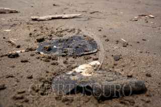 ALVARADO, VERACRUZ, 21ABRIL2015.- Pescadores de la zona de Alvarado denunciaron que desde hace varios días han aparecido manchas de chapopote en las playas, lo cual ha generado contaminación y echado a perder sus redes de trabajo. Plantas de la zona se han visto afectadas y algunos peces muertos con rastros de combustible, el cual atribuyen a algún derrame de la paraestatal Petróleos Mexicanos. FOTO: FÉLIX MÁRQUEZ /CUARTOSCURO.COM