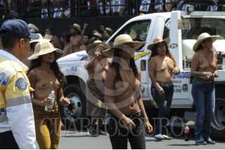 MÉXICO, D.F., 22ABRIL2015.- Se manifiestan indígenas, integrantes de los 400 pueblos en Bellas Artes. Esto en protesta por conseguir una respuesta del gobierno para solucionar problemas que se les han venido presentando por mucho tiempo atrás. FOTO: ARMANDO MONROY /CUARTOSCURO.COM