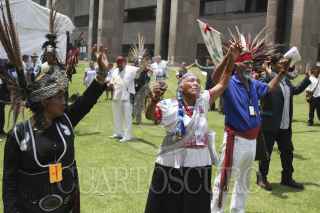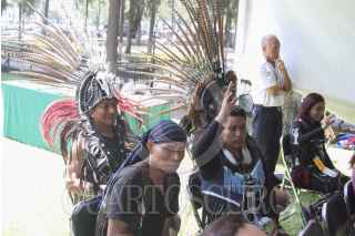 MÉXICO, D.F., 22ABRIL2015.- Con una limpia a trabajadores de la Cámara de Diputados y una ceremonia ancestral concluyó el Parlamento de Sabiduría Ancestral Tradición y Conocimiento Para la Vida realizado en el patio trasero del Congreso de la Unión. FOTO: SAÚL LÓPEZ /CUARTOSCURO.COM