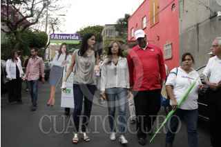 MÉXICO, D.F., 22ABRIL2015.- Laura Ballesteros, candidata del PRI a jefa delegacional de la Miguel Hidalgo, y Lilia Abed, candidata a diputada local, realizaron un recorrido por el Mercado América en la colonia América de la Delegación Miguel Hidalgo. FOTO: IVÁN STEPHENS /CUARTOSCURO.COM