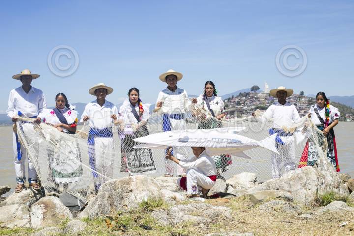 PATZCUARO, MICHOACÁN, 22ABRIL2015.- La Danza del Pescado blanco de la Isla de Janitzio, se popularizó al mismo tiempo que la especie entró en proceso de extinción y ya sólo el recuerdo queda, las redes de mariposa son una lástima porque ya tampoco hay charalitos, los pescadores lo único que hacen es una demostración de cómo era la pesca con esas redes, es un nueva forma de ganarse la vida porque la pesca ya no da; a veces, en toda una jornada, de 7 de la mañana a 3 de la tarde se saca un kilo y como está a 30 pesos no alcanza para sostener a una familia. FOTO: JUAN JOSÉ ESTRADA SERAFÍN /CUARCOSCURO.COM