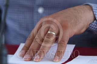 MÉXICO, D.F., 23ABRIL2015.- Martí Batres en conferencia de prensa da a conocer como en el estado de Sonora en el municipio de Guaymas, fueron detenidos dos militantes del partido de MORENA por colocar propaganda electoral y se le impuso una multa de más de 7000 pesos. En el Distrito Federal denuncia la participación extraordinaria de la Secretaria de Seguridad Pública en campañas electorales, siendo esto innecesario ya que estamos en tiempos de campaña electoral. FOTO: ISABEL MATEOS /CUARTOSCURO.COM