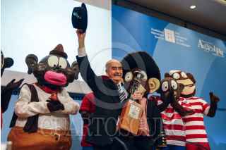 MÉXICO, D.F., 23ABRIL2015.- Sixto Valencia Burgos, creador de la famosa historieta mexicana “Memin Pinguin” murió el día de hoy a la edad de 81 años a causa de un infarto, noticia que dio a conocer su biógrafo Luis Gantus. En la imagen del 6 de diciembre de 2014, Asistió al homenaje que le realizaron en la edición 28 de la Feria Internacional del Libro de Guadalajara 2014 (FIL). FOTO: FERNANDO CARRANZA /ARCHIVO /CUARTOSCURO.COM