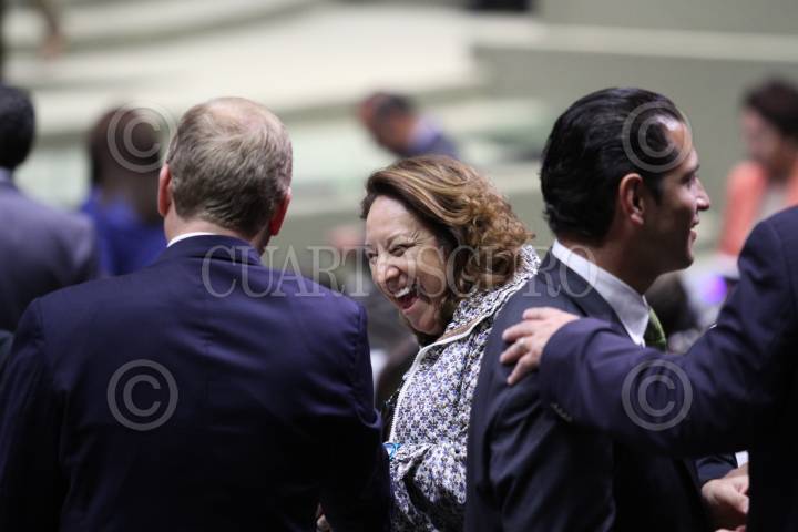 MÉXICO, D.F., 23ABRIL2015.- Manlio Fabio Beltrones coordinador del PRI en la Cámara de Diputados platica con Manuel Huerta durante la votación en la sesión ordinaria donde se discutió el dictamen de la Ley Federal de Armas de Fuego. FOTO: SAÚL LÓPEZ /CUARTOSCURO.COM