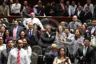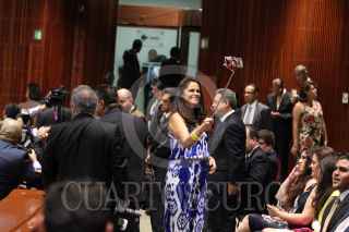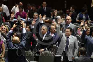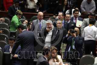 MÉXICO, D.F., 23ABRIL2015.- Manlio Fabio Beltrones coordinador del PRI en la Cámara de Diputados platica con Manuel Huerta durante la votación en la sesión ordinaria donde se discutió el dictamen de la Ley Federal de Armas de Fuego. FOTO: SAÚL LÓPEZ /CUARTOSCURO.COM