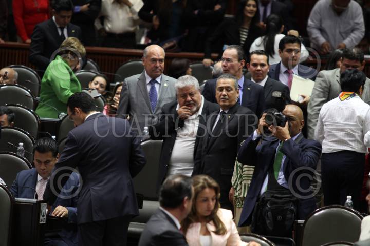 MÉXICO, D.F., 23ABRIL2015.- Manlio Fabio Beltrones coordinador del PRI en la Cámara de Diputados platica con Manuel Huerta durante la votación en la sesión ordinaria donde se discutió el dictamen de la Ley Federal de Armas de Fuego. FOTO: SAÚL LÓPEZ /CUARTOSCURO.COM