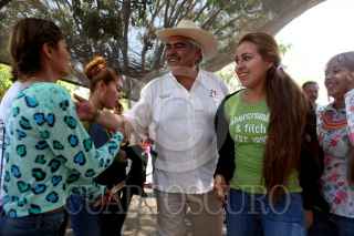 TUMBISCATÍO, MICHOACÁN, 23ABRIL2015.- El candidato a Gobernador por el Partido Revolucionario Institucional (PRI), Ascención Orihuela Bárcenas, saluda a los asistentes en un mitín realizado en la comunidad de Las Cruces en la región de tierra caliente. FOTO: ALAN ORTEGA /CUARTOSUCRO.COM