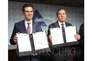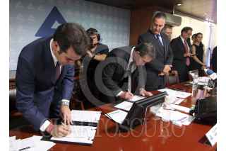 MÉXICO, D.F., 23ABRIL2015.- ElConsejero Presidente del INE Lorenzo Córdova Vianello y el Presidente de la CONCANACO SERVYTUR Enrique Solana Sentíes encabezaron la firma de Convenio de colaboración INE-CONCANACO SERVYTUR. FOTO: INE /CUARTOSCURO.COM