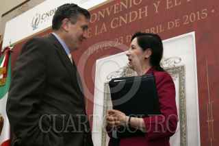 MÉXICO, D.F., 23ABRIL2015.- El presidente de la CNDH, Luis Raúl González Pérez firmó un convenio de colaboración con el INEHRM, que encabeza Patricia Galeana, que se inscribe en el 25 aniversario de la CNDH y el próximo centenario de la Carta Magna. FOTO: CNDH /CUARTOSCURO.COM