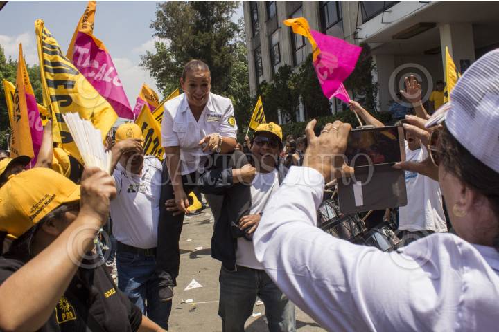 MEXICO, D.F., 25ABRIL2015.- Los candidatos del PRD por la delegación y diputaciones de Iztacalco llevaron a cabo un mítin en la explanada de la demarcación, en el marco de las campañas electorales por los comicios del próximo 7 de julio. Raúl Flores, presidente del PRD DF y Jesús Ortega, acompañaron a Carlos Estrada Meráz, Diego Ordóñez, Elizabeth Mateos y Julio Anaya, candidatos del Sol Azteca para la demarcación. En la imagen, Raúl Flores y Jesús Ortega intercambian comentarios durante el mítin. FOTO: DAVID POLO /CUARTOSCURO.