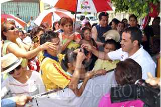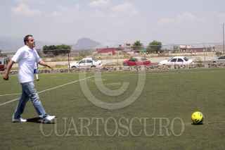 CUERNAVACA, MORELOS, 26ABRIL015.- Cuauhtémoc Blanco, candidato del PSD para la presidencia municipal de Cuernavaca, visitó la colonia Universo, donde llevó a cabo el programa Temoc Pipas y además convivió en las canchas de la colonia con jugadores y vecinos. FOTO: PATRICIA MORALES /CUARTOSCURO.COM