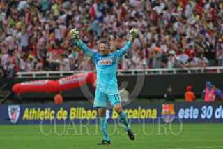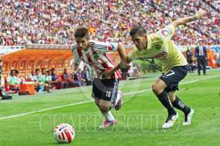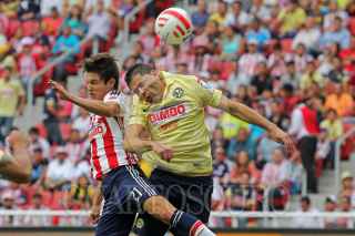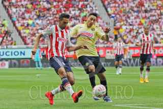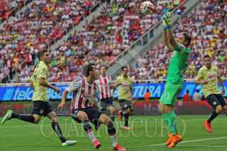 ZAPOPAN, JALISCO. 26ABRIL2015.- El guardameta del América Moisés Muñoz celebra la anotación de su equipo, esto en partido correspondiente a la Jornada 15 del Torneo Clausura 2015 de la Liga MX, en donde se enfrentaron los equipos de las Chivas de Guadalajara frente a las Águilas del América, en partido que se jugó en el Estadio Omnilife. FOTO: FERNANDO CARRANZA GARCIA / CUARTOSCURO.COM
