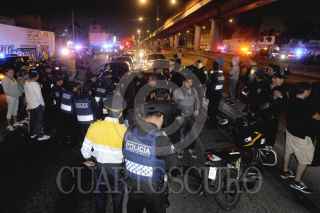MÉXICO, D.F., 27ABRIL2015.- Arranconeros fueron encapsulados y detenidos, mediante un operativo por calles de la ciudad, siendo asegurado en el paso a desnivel sobre Avenida Oceanía a la altura de la calle Persia en la colonia Romero Rubio. Fueron puestos a disposición del Juez Cívico en V. Carranza, 25 jóvenes y 20 automóviles. FOTO: LUIS CARBAYO /CUARTOSCURO.COM