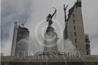 MÉXICO, D.F., 27ABRIL2015.- Dos construcciones de corporativos se aprecian desde la glorieta de la Diana Cazadora, monumento simbólico de la Ciudad de México. FOTO: SAÚL LÓPEZ /CUARTOSCURO.COM