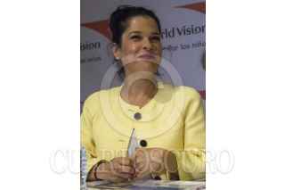 MÉXICO, D.F., 27ABRIL2015.- La conductora Martha Debayle durante la conferencia donde dio a conocer las acciones a desarrollar el World Vision México el cual tiene como objetivo apadrinar a 8 mil niños de escasos recursos en el país. FOTO: ENRIQUE ORDÓÑEZ /CUARTOSCURO.COM