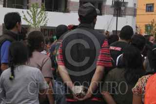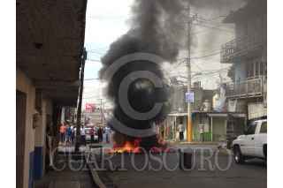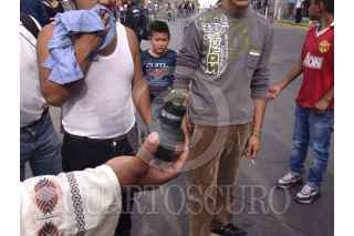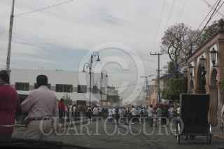 ECATEPEC, ESTADO DE MÉXICO, 27ABRIL2015.- Dos personas detenidas por bloquear la carretera México Pachuca derivó en un enfrentamiento entre pobladores de San Pedro Xalostoc contra Granaderos y Policías Municipales, al exigir la liberación del Presidente de la colonia y una persona mas, intentaron quemar patrullas, reteniendo a un Policia, sobre la calle Benito Juárez quemaron llantas, Granaderos arribaron a la explanada de la colonia y con gas lacrimógeno esparcieron a la multitud quienes respondía con piedras y botellas hacia los uniformados que tiraban los gases para replegarlos , lesionando a una persona en el rostro que solo pasaba por el lugar, al rescatar a sus compañeros se retiraron del lugar. FOTO: DIEGO REYES /CUARTOSCURO.COM
