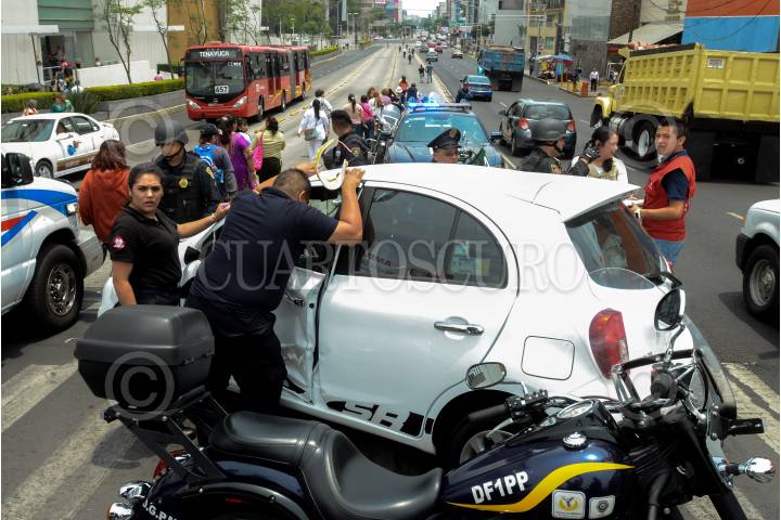 MÉXICO, D.F., 27ABRIL2015.- Una persona resulto lesionada cuando el metrobus se impacto contra un carro sobre la avenida Cuauhtémoc y Viaducto. FOTO: ARMANDO MONROY /CUARTOSCURO.COM