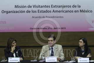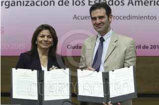 MÉXICO, D.F., 27ABRIL2015.- El Instituto Nacional Electoral (INE) y la Organización de los Estados Americanos (OEA) firmaron el Acuerdo de Procedimiento relativo a la Misión de Observación para el Proceso Electoral Federal 2014-2015. A fin de que la OEA de testimonio riguroso y fundado sobre las competencias electorales mexicanas para preparar, desarrollar y calificar las elecciones federales que se celebrarán el 7 de junio en el país, destacó el INE en un comunicado. FOTO: ISABEL MATEOS /CUARTOSCURO.COM