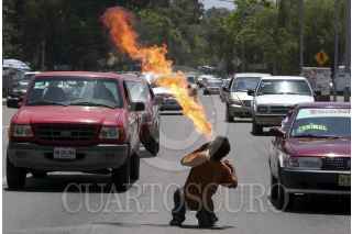 OAXACA, OAXACA, 27ABRIL2015.- Un joven tragafuegos labora en el crucero del Instituto Estatal de Educación Pública (IEEPO) para recaudar dinero para poder sobrevivir. FOTO: ARTURO PÉREZ ALFONSO /CUARTOSCURO.COM