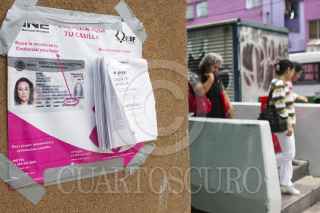 MÉXICO, D.F., 28ABRIL2015.- El INE ha colocado las listas en las calles para que la gente ubique sus casillas, la información esta colocada en la salida del metro Niños Héroes. FOTO: MOISÉS PABLO /CUARTOSCURO.COM