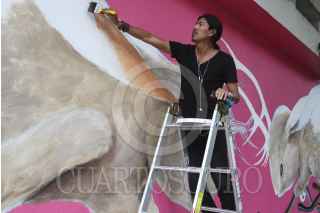 MÉXICO, D.F., 28ABRIL2015.- Rubén Carrasco, artista mexicano, nacido en el estado de Puebla, con residencia en Montreal, Canada., realiza una serie de proyectos artistas en colaboración con diferentes artistas provenientes de diferentes parte del mundo, en la ciudad de México donde se pretende plasmar su obra en diferentes fachadas, así también ofrecer talleres con propuestas totalmente diferentes a los artistas mexicanos. FOTO: ISABEL MATEOS /CUARTOSCURO.COM