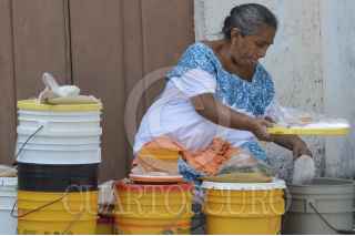 CANCUN, QROO., 29ABRIL2015.- Como cada mañana Doña Jacinta y Doña Francisca preparan su venta de tamales colados, vaporcitos y pozol típico de la región. FOTO:ELIZABETH RUIZ/CUARTOSCURO.COM