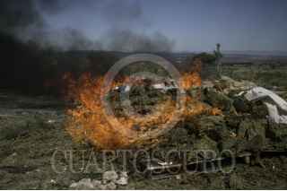 ZACATECAS, ZACATECAS, 29ABRIL2015.- La Procuradoria General de República en su delegación en Zacatecas, incinero 5 toneladas de narcóticos, en su mayoría marihuana, así como semilla de marihuana, hachís, en menor cantidad cocaína y psicóticos. En el mercado negro toda esta cantidad tendría un valor aproximado de 5 millones de pesos, informo la PGR. FOTO: JUAN ORTEGA /CUARTOSCURO.COM