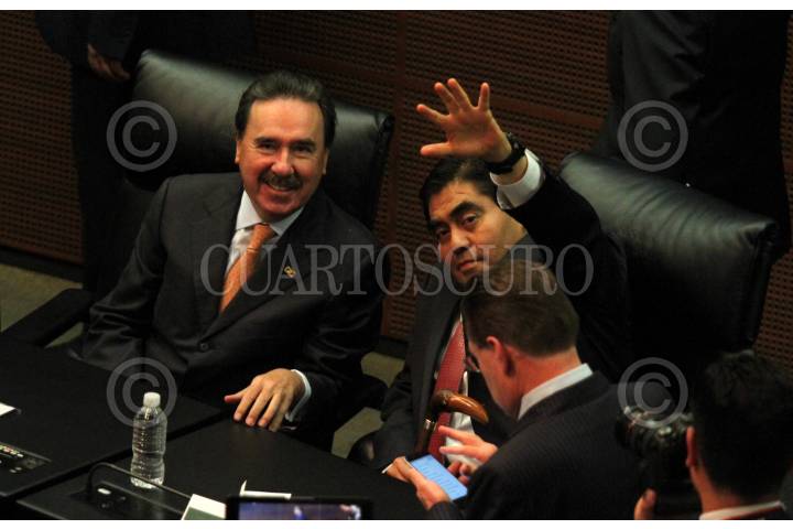 MÉXICO, D.F., 30ABRIL2015.- Emilio Gamboa Patrón, coordinador del Partido Revolucionario Institucional, sale de las oficinas del PAN en el Senado, durante la suspencion de la sesión en la que el grupo parlamentario del Partido Acción Nacional no se presentó ya que en los dictámenes a discusión no se encontraba la propuesta de magistrado para el Tribunal Electoral del Poder Judicial de la Federación. FOTO: ADOLFO VLADIMIR /CUARTOSCURO.COM