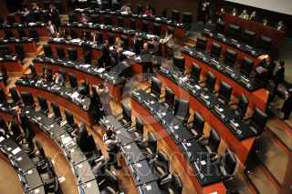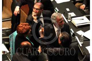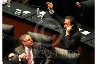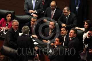 MÉXICO, D.F., 30ABRIL2015.- Emilio Gamboa Patrón, coordinador del Partido Revolucionario Institucional, sale de las oficinas del PAN en el Senado, durante la suspencion de la sesión en la que el grupo parlamentario del Partido Acción Nacional no se presentó ya que en los dictámenes a discusión no se encontraba la propuesta de magistrado para el Tribunal Electoral del Poder Judicial de la Federación. FOTO: ADOLFO VLADIMIR /CUARTOSCURO.COM