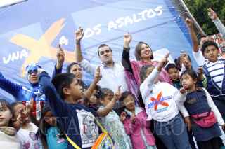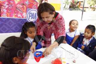MEXICO, D.F., 30ABRIL2015.- Xochitl Galvez, candidata del PAN a la jefatura delegación en Miguel Hidalgo acompañada de Jorge Triana y America Rangel, candidatos a diputados locales y federales durante un evento de campaña en el Polideportivo Pensil en donde convivio con niños y niñas. FOTO: RODOLFO ANGULO /CUARTOSCURO.COM