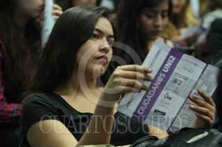 MÉXICO, D.F., 30ABRIL2015.- Los 4 estudiantes que lograron realizar algunas preguntas, manifestaron su postura ante la anulación del voto, que no significaba una falta de conciencia cívica, si no una manifestación de su descontento y desconfianza en las instituciones que rigen el país. FOTO: ISABEL MATEOS / CUARTOSCURO.COM