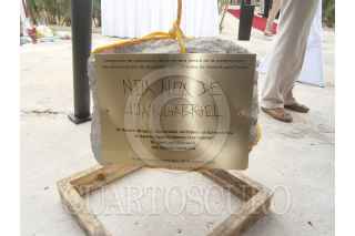 CANCÚN, QUINTANA ROO, 30ABRIL2015.- El Gobernador del Estado de Quintana Roo, Roberto Borge Angulo y el afamado cantautor mexicano Juan Gabriel colocaron la primera piedra de lo que será el Centro de Espectáculos Noa Noa, que construirá el Grupo Lomas Travel en la Riviera Maya, en honor del Divo de Juárez, y el cual albergará museos de las tradiciones y gastronomía mexicana, una escuela de música para niños y un auditorio para mil 200 espectadores. FOTO: CUARTOSCURO.COM