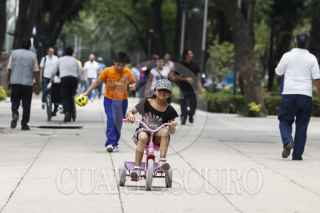 MÉXICO,D.F., 01MAYO2015.- Una niña juega con su triciclo sobre el camellón del Paseo de la Reforma. FOTO: RODOLFO ANGULO /CUARTOSCURO.COM
