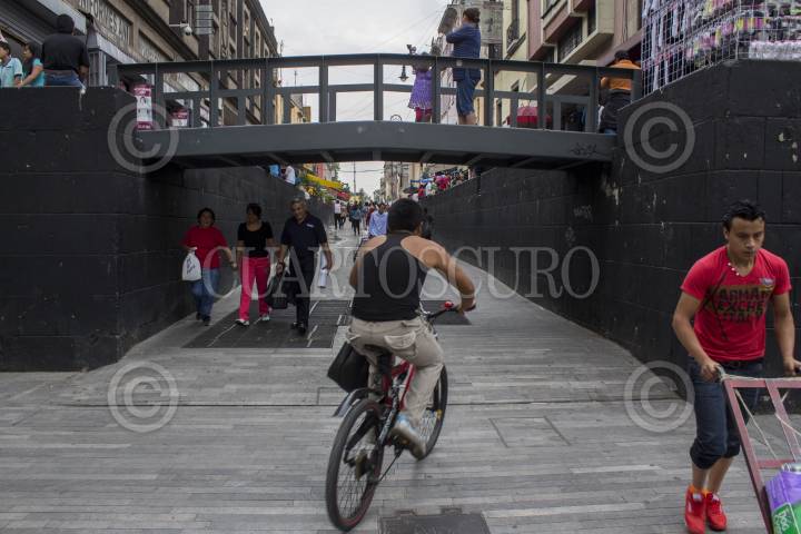 MEXICO, D.F., 02MAYO2015.- Un ciclista pasa veloz sobre la calle Emiliano Zapata, en el Centro Histórico de la Ciudad. FOTO: DAVID POLO /CUARTOSCURO.COM