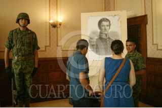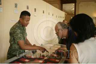 ZACATECAS, ZACATECAS, 02 DE MAYO 2015.- Elementos de las Fuerzaz Armadas explican a los asistentes de la exposición itinerante de la Secretaría de Defensa Nacional, acerca de los facsímiles de los documentos "Sentimientos de la Nación" y de las Constituciones de 1824,1857,1917, además de la exposición numismática itinerante "Moneda e Historia". La exposición está acompañada por una muestra de 35 fotografías alusivas a las misiones generales del Ejército y la Fuerza Aérea Mexicana. FOTO: JUAN ORTEGA /CUARTOSCURO