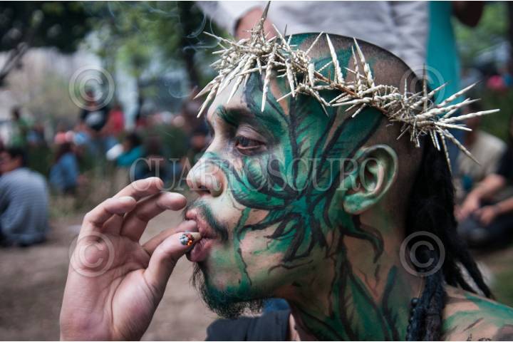 GUADALAJARA, JALISCO, 02MAYO2015.-A favor y a manera de protesta por la legalización de la marihuana en México, decenas de personas marcharon del parque rojo hasta Av. México donde se encuentra el monumento a la madre Patria, dicha marcha fue organizada por el Colectivo 4:20. FOTO: FERNANDO CARRANZA GARCIA / CUARTOSCURO.COM