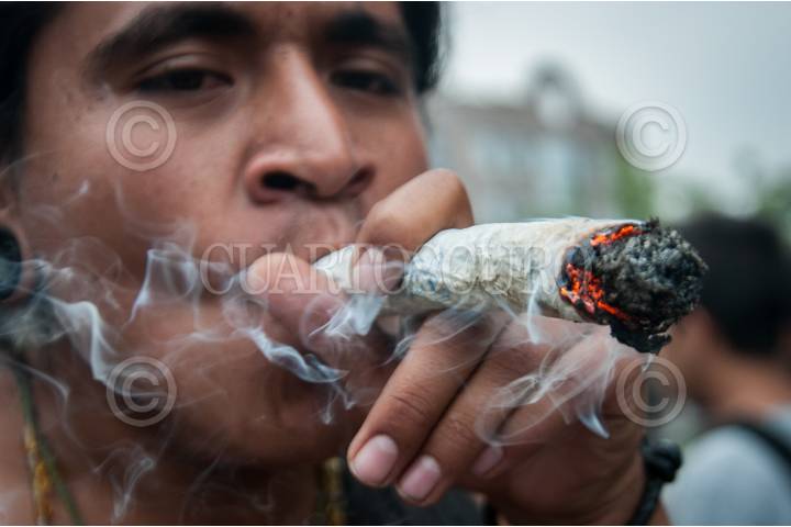 GUADALAJARA, JALISCO, 02MAYO2015.-A favor y a manera de protesta por la legalización de la marihuana en México, decenas de personas marcharon del parque rojo hasta Av. México donde se encuentra el monumento a la madre Patria, dicha marcha fue organizada por el Colectivo 4:20. FOTO: FERNANDO CARRANZA GARCIA / CUARTOSCURO.COM
